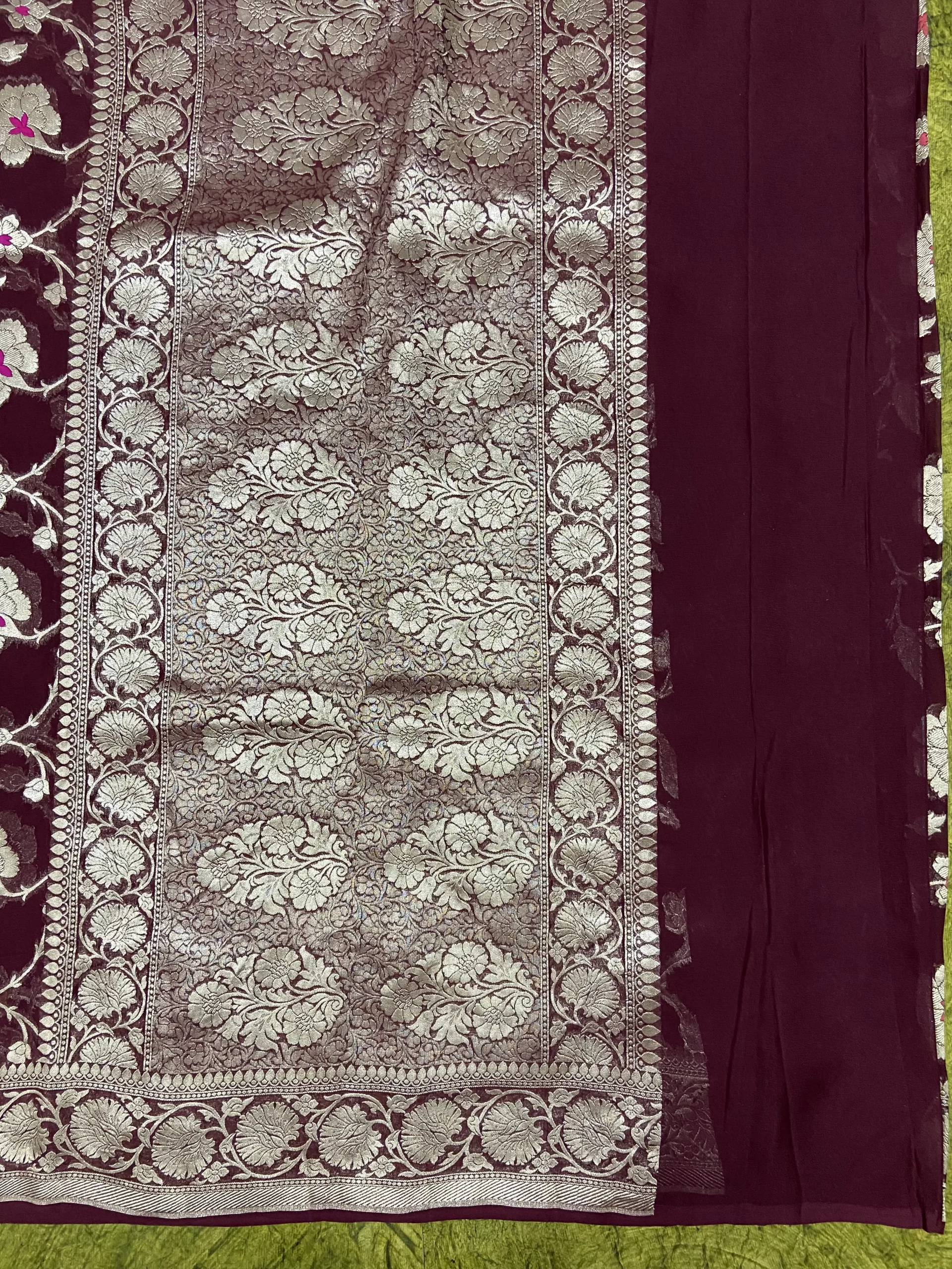 This is a hand-woven saree so there might be some irregularities, but that is what makes a banarasi saree unique. For any assistance on this product, you can email us at sales@.com.