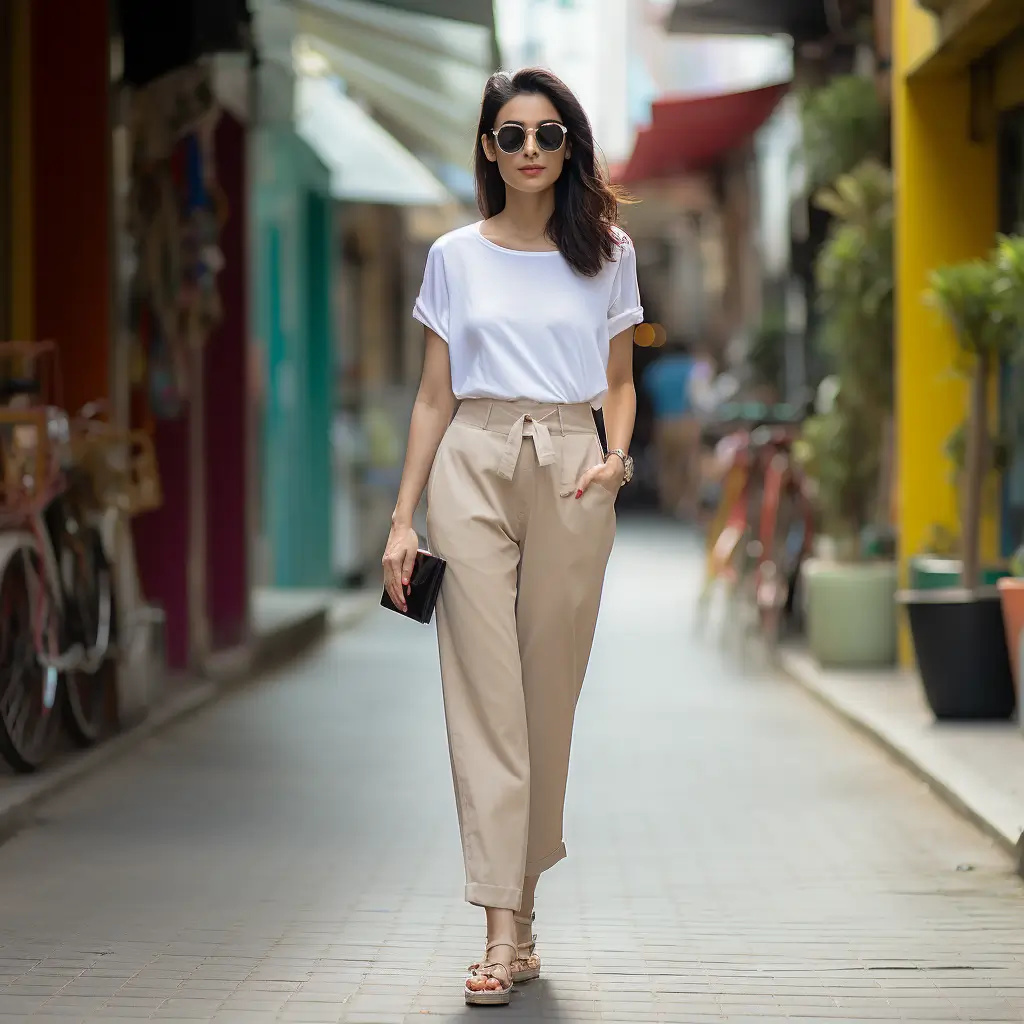 High-waisted pants have a waistline that sits above the natural waist, creating an elongated leg and a retro-inspired look. Ideal for pear-shaped and hourglass body types, providing a flattering and vintage style. Elevate your high-waisted pants with a personalized fit. Get yours tailor-made today for a chic and tailored appearance.
